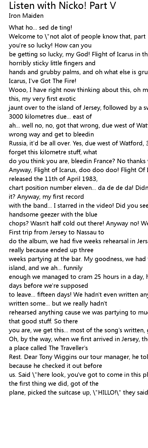 hands and grubby palms, and oh what else is grubby, I don't know. Flight Of Icarus, I've Got The Fire! |