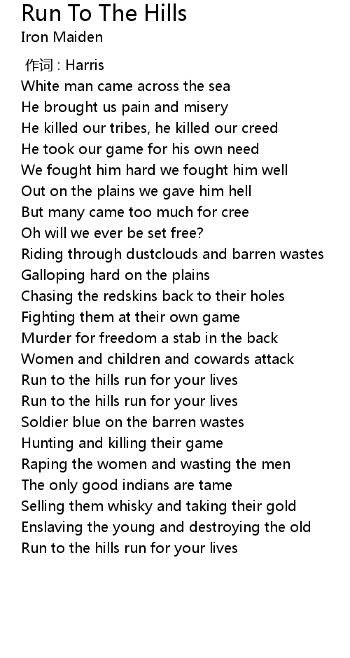 | Song | Run To The Hills |