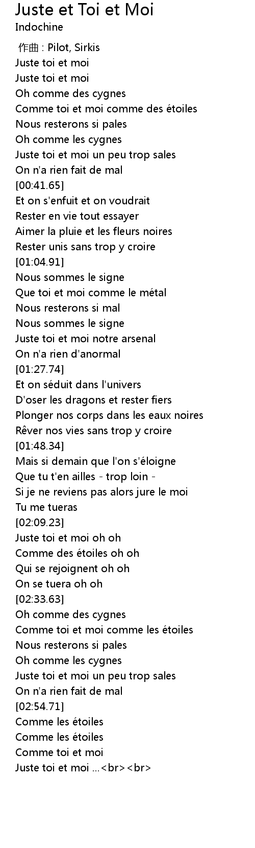 | [03:11.37] | Juste toi et moi ...<br><br> |
