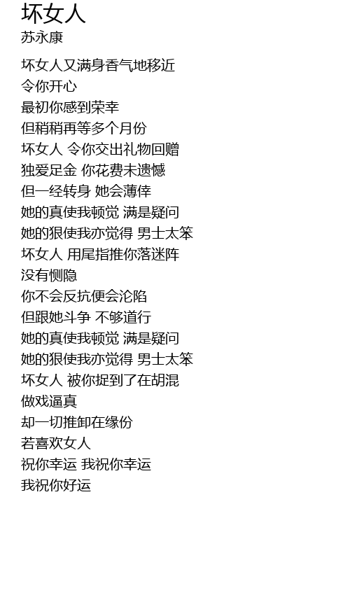| 坏女人 用尾指推你落迷阵 | |