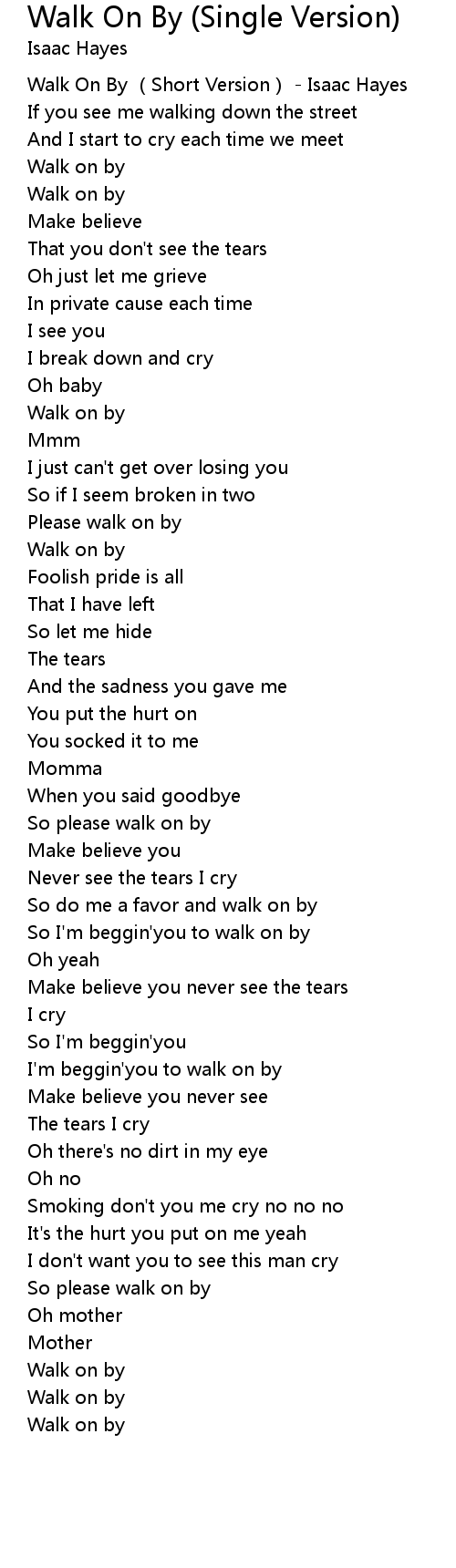 | [00:00.570] | Walk On By (Short Version) - Isaac Hayes |