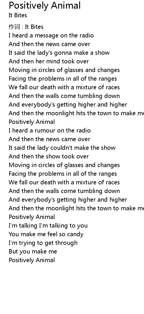 | Song | Positively Animal |