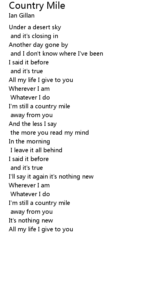 | I'm still a country mile | |