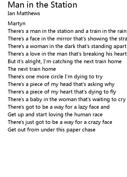 There's a man in the station and a train in the rain |