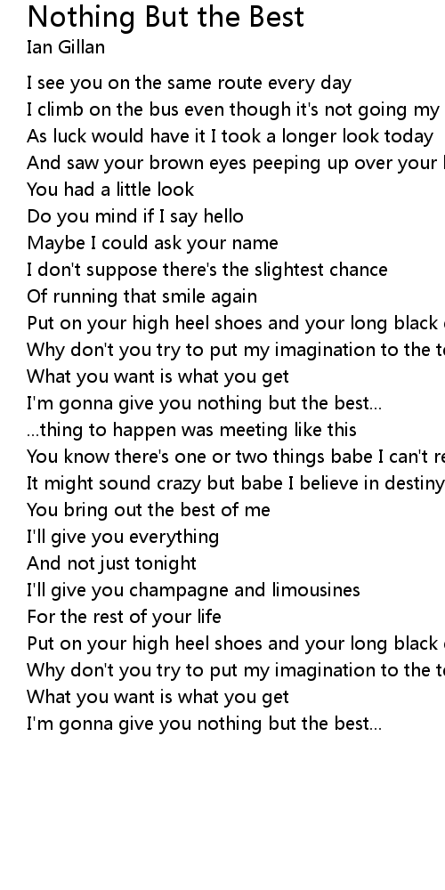 I'm gonna give you nothing but the best... |