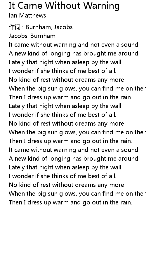 | Song | It Came Without Warning |