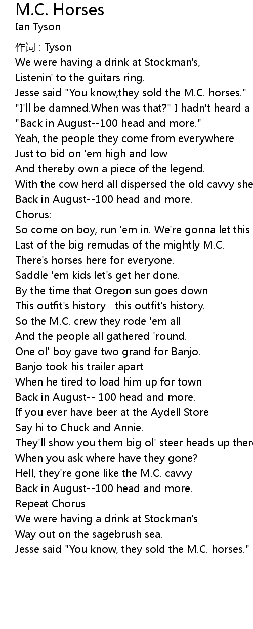 | Song | M.C. Horses |