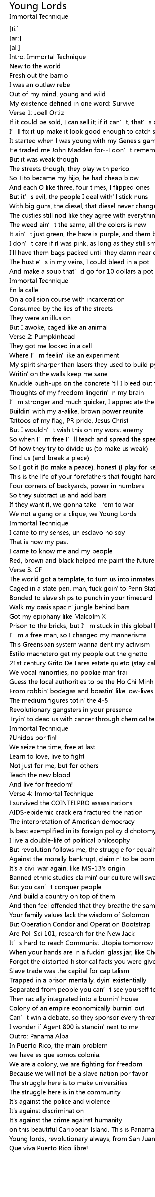 | [00:01.79] | Intro: Immortal Technique |