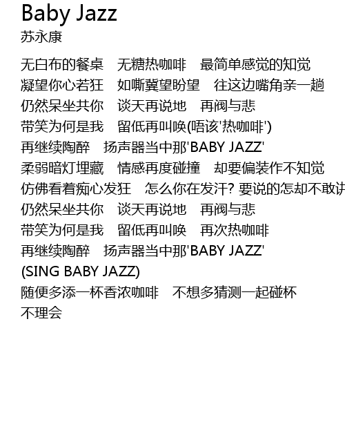 | zài jì xù táo zuì yáng shēng qì dāng zhōng nà' BABY JAZZ' | |