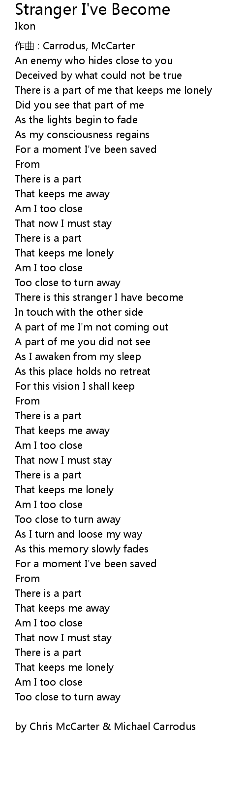 | There is this stranger I have become | |
