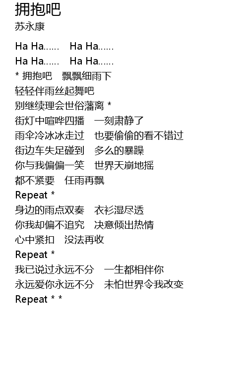 | * 拥抱吧 飘飘细雨下 | |