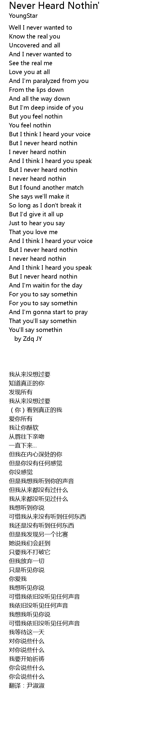 But I never heard nothin |