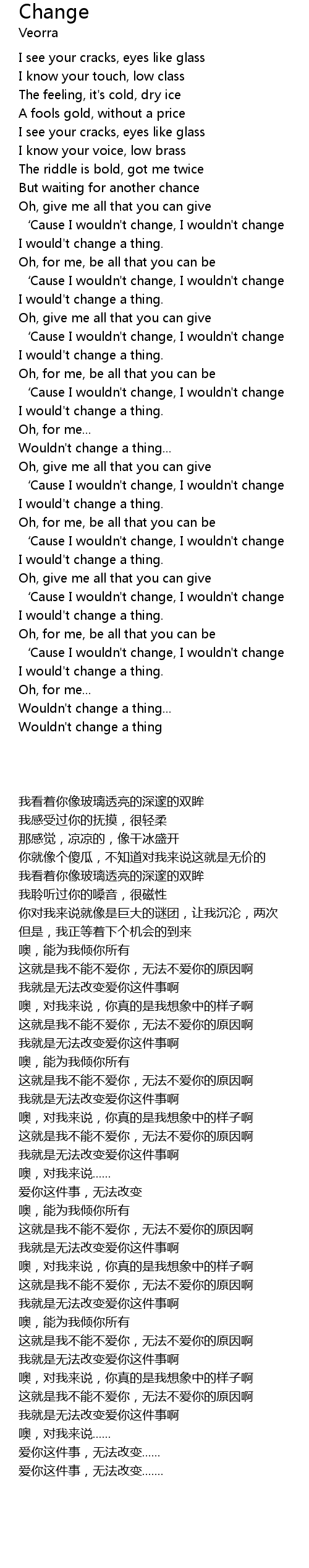 | [02:27.34] | ‘Cause I wouldn't change, I wouldn't change |