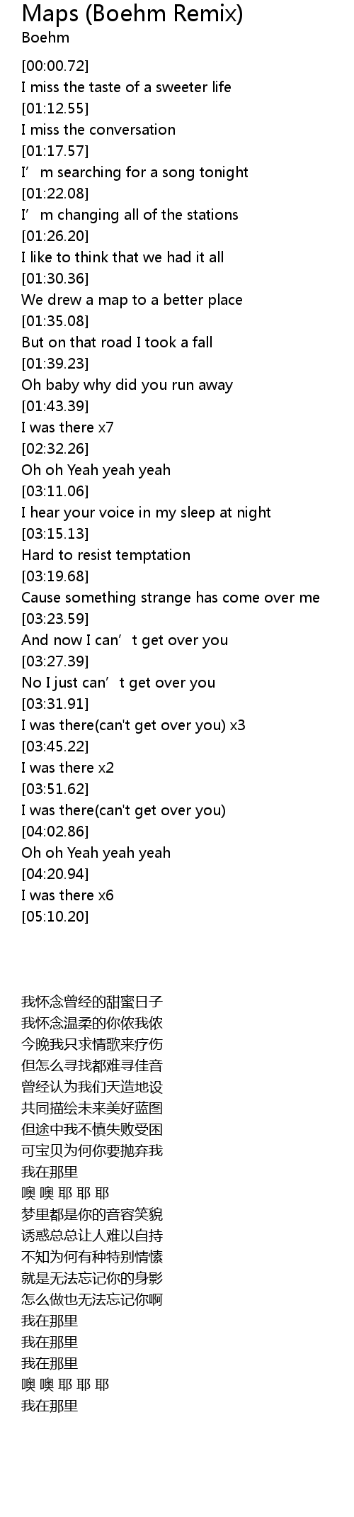 | [03:33.51] | I was there(can't get over you) x3 |