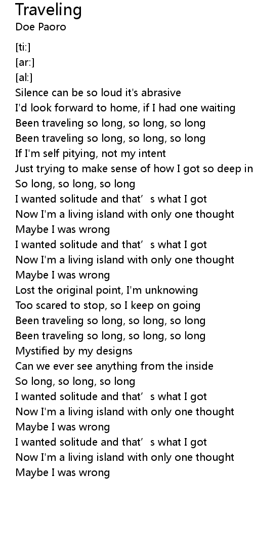 | [01:02.03] | I wanted solitude and that' s what I got |