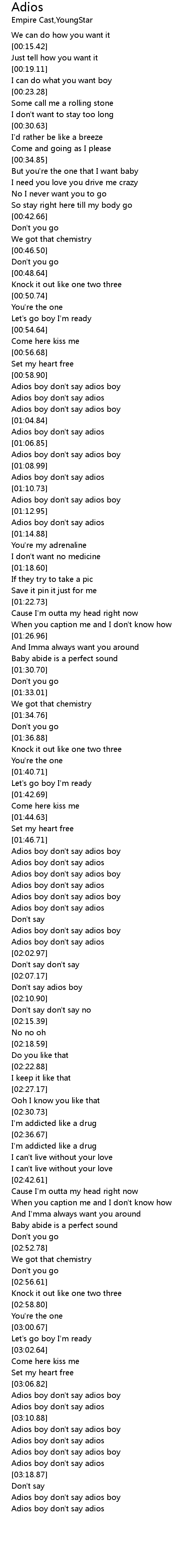 Adios boy don't say adios |