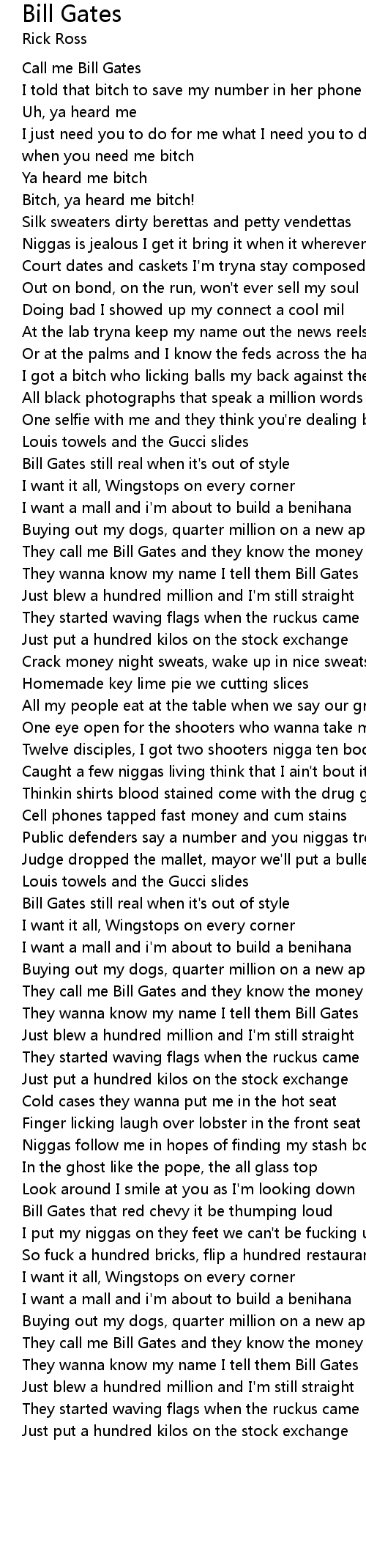 I told that bitch to save my number in her phone under Bill Gates ya heard me |