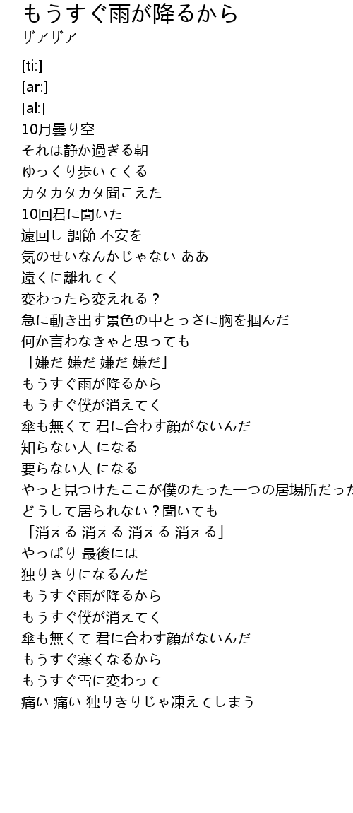 | [01:18.18] | もうすぐ雨が降るから |