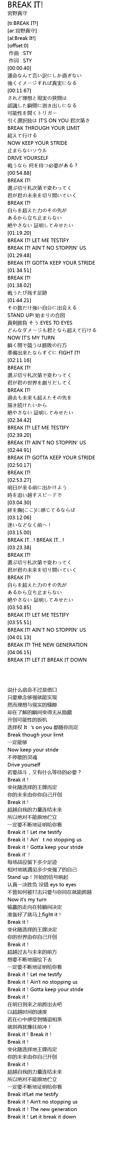 | [00:42.30] | BREAK THROUGH YOUR LIMIT |