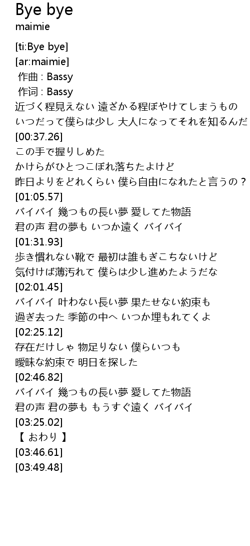 | [02:59.54] | バイバイ 幾つもの長い夢 愛してた物語 |