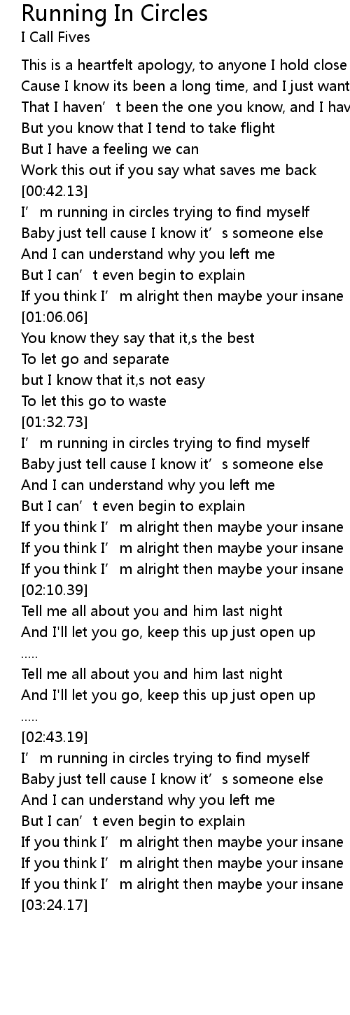 | [01:33.50] | I' m running in circles trying to find myself |