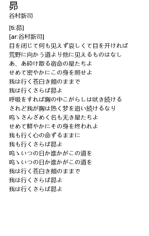 | [01:51.686] | 呼吸をすれば胸の中こがらしは吠き続ける |