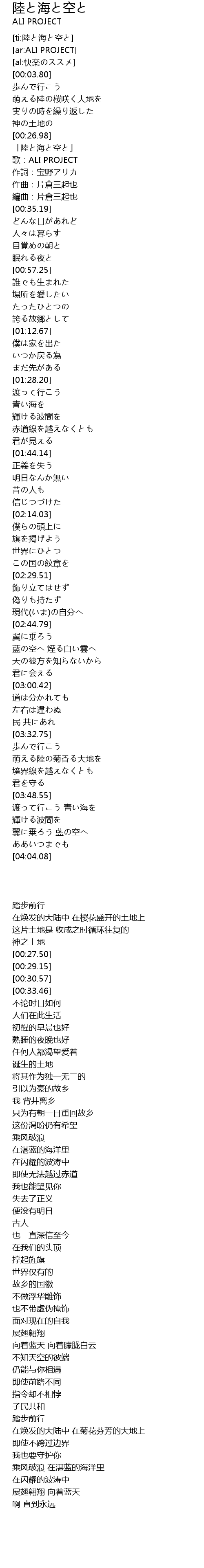 | [00:27.50] | 「陸と海と空と」 |