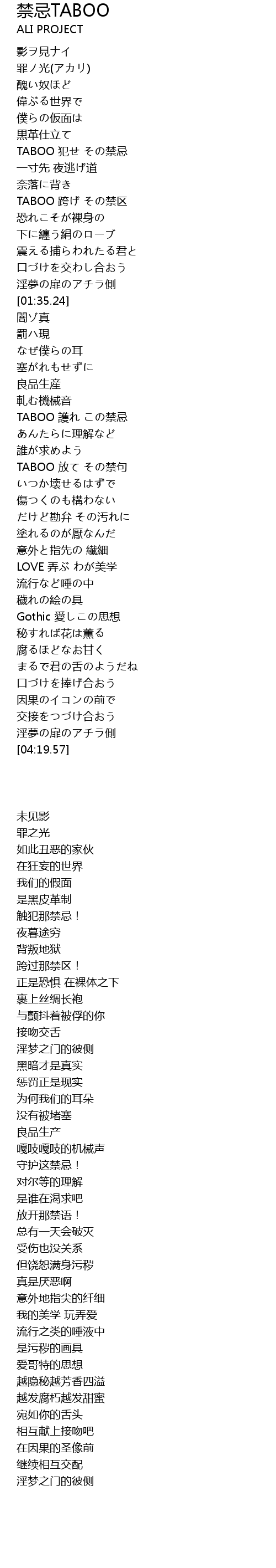 jin ji TABOO Lyrics