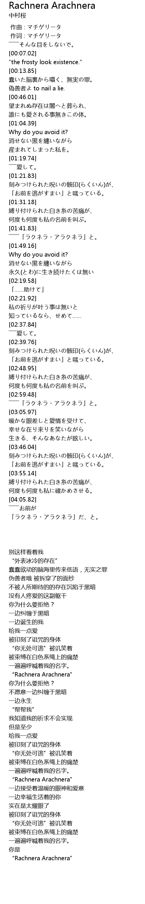 | [04:07.13] | 「ラクネラ・アラクネラ」だ、と。 |