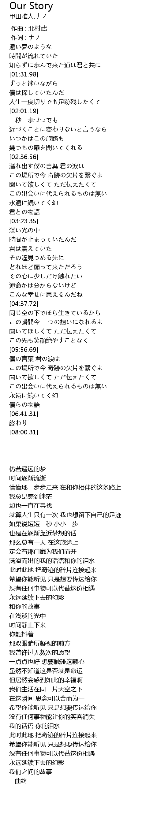 | [06:03.41] | この場所で今 奇跡の欠片を繋ぐよ |
