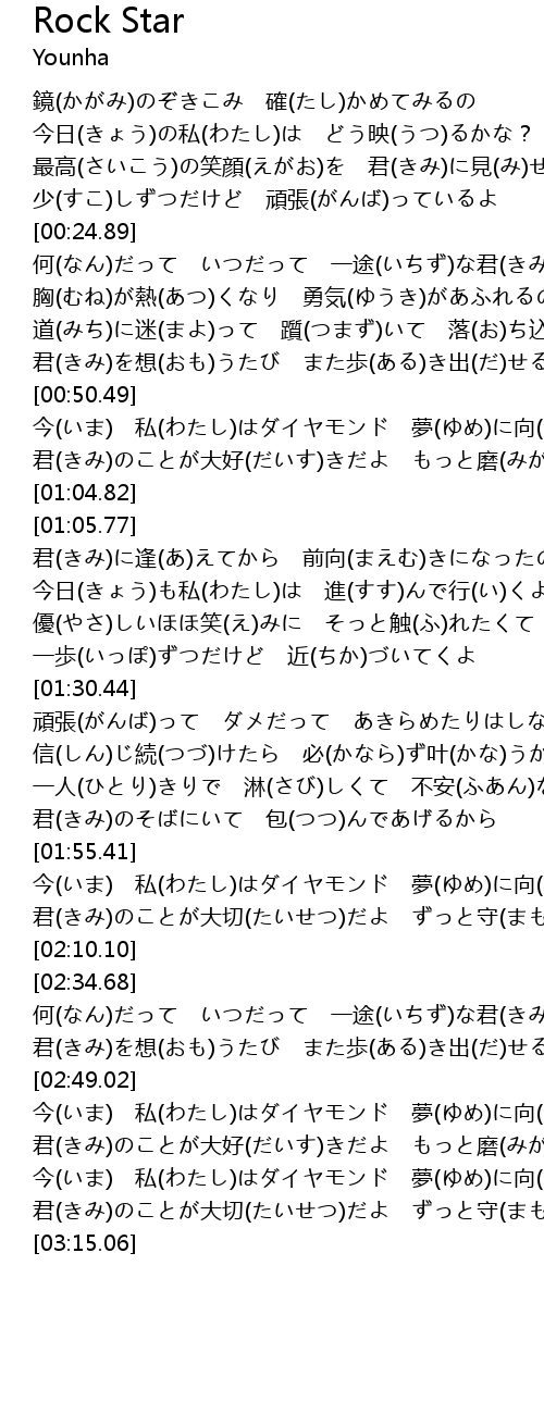 [02:50.41] 今(いま) 私(わたし)はダイヤモンド 夢(ゆめ)に向(む)かい輝(かがや)いて
