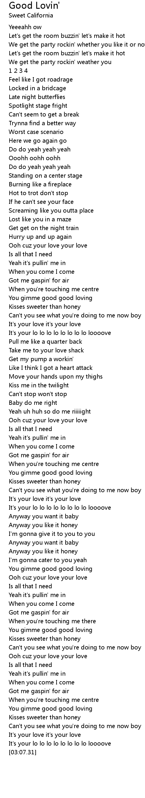 You gimme good good loving |