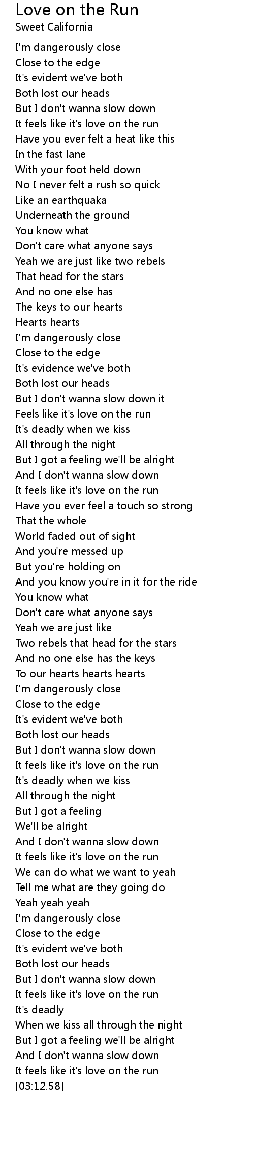 It feels like it's love on the run |