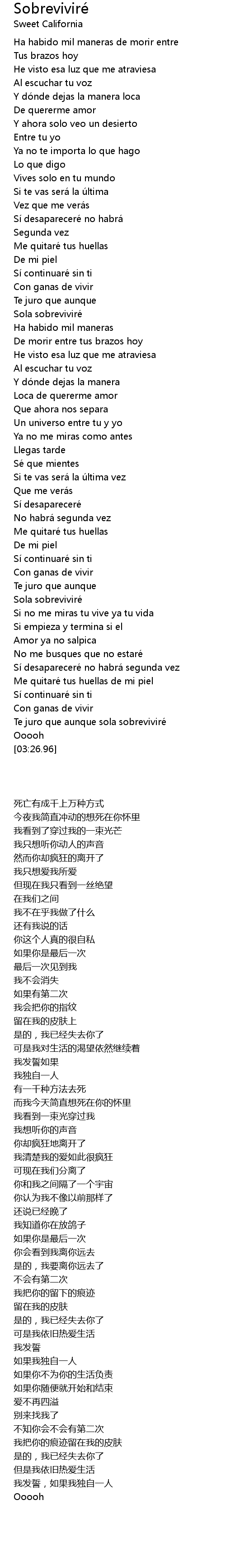 | [03:12.77] | Te juro que aunque sola sobrevivire |
