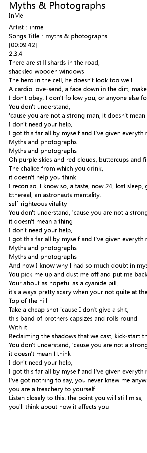| [01:08.67] | I don' t obey, I don' t follow you, or anyone else for that matter |