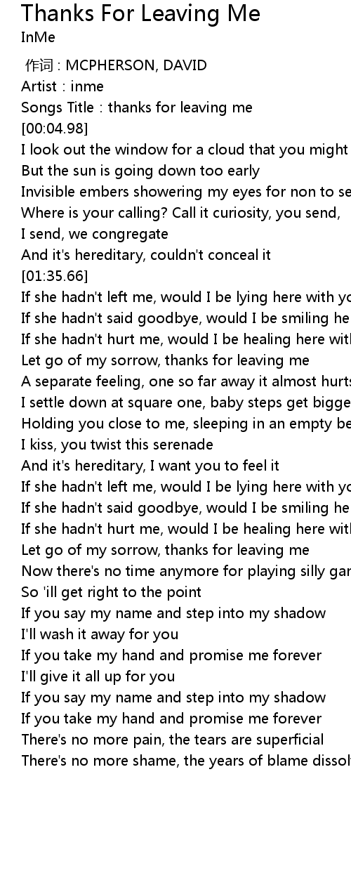 | [00:02.54] | Songs Title: thanks for leaving me |