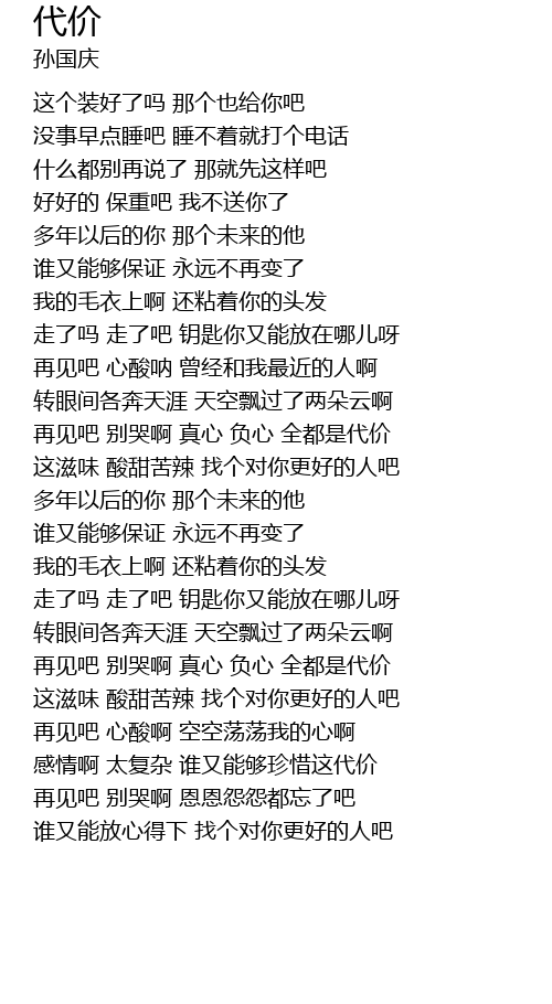 | [01:49.610] | zài jiàn ba bié kū a zhēn xīn fù xīn quán dōu shì dài jià |