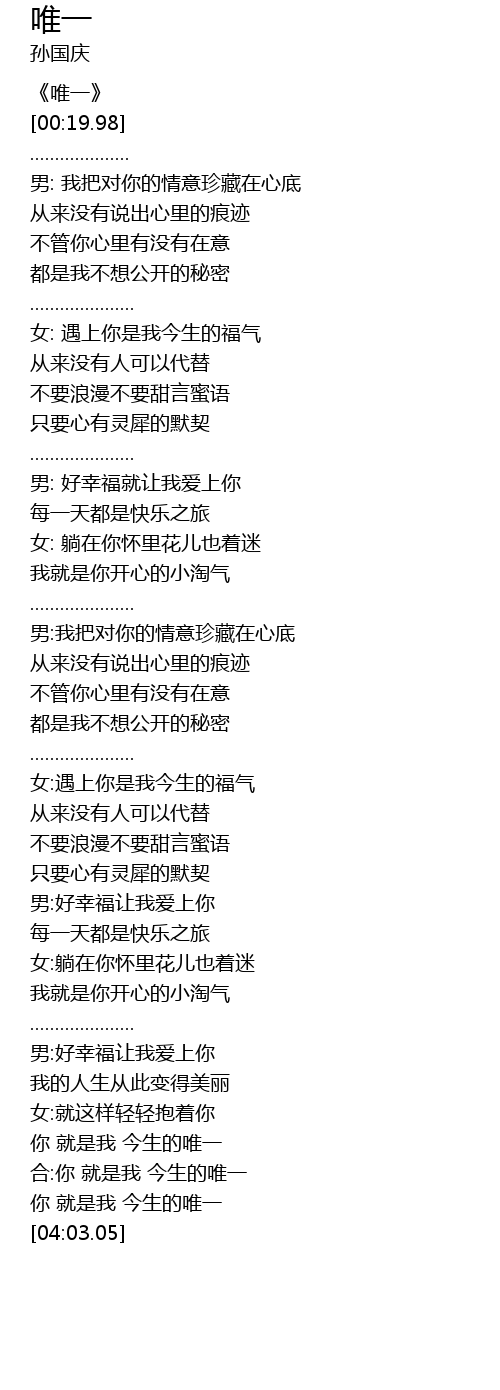 | [03:55.06] | 你 就是我 今生的唯一 |