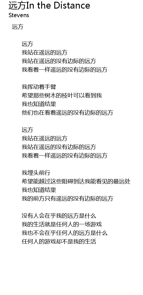 | Song | 远方In the Distance |