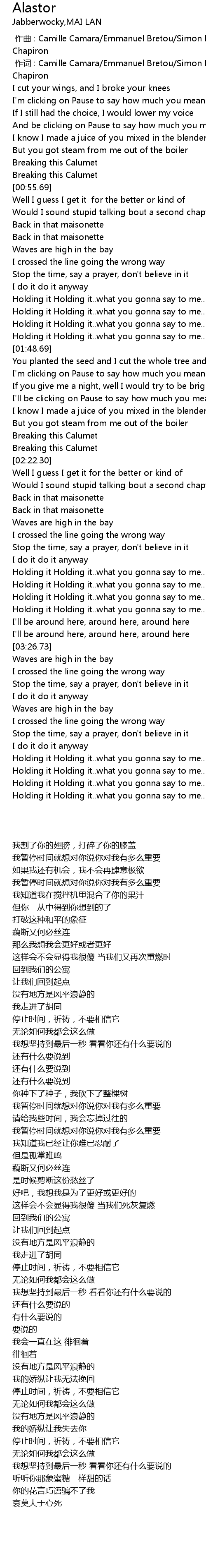 | [00:38.34] | If I still had the choice, I would lower my voice |