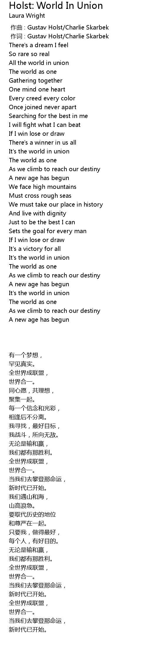 | [00:01.00] | 作词 : Gustav Holst/Charlie Skarbek |