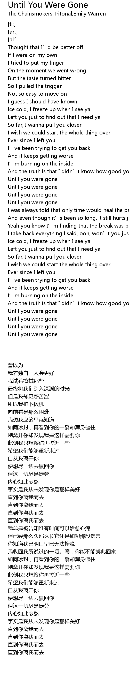 | [01:36.20] | Until you were gone |
