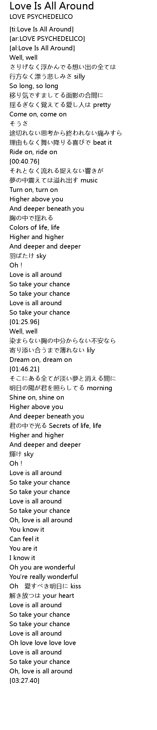 | [03:13.49] | Love is all around |