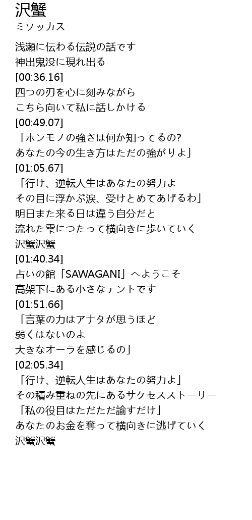 | [02:59.17] | 沢蟹沢蟹 |