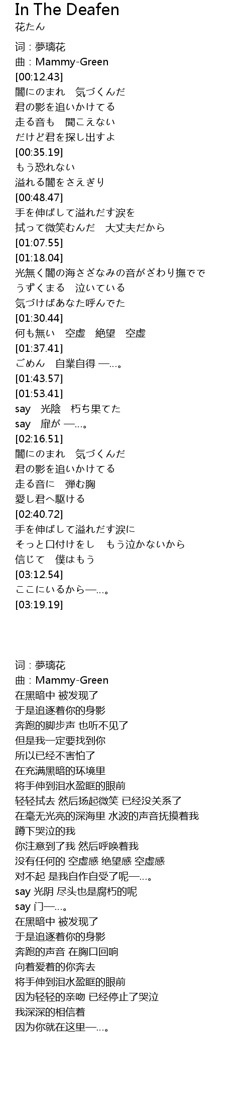 | [01:53.70] | say 光陰 朽ち果てた |