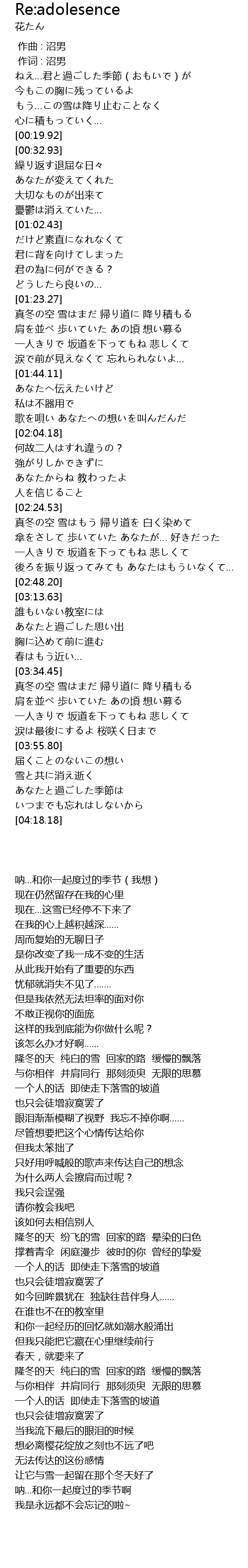| [04:00.27] | 雪と共に消え逝く |
