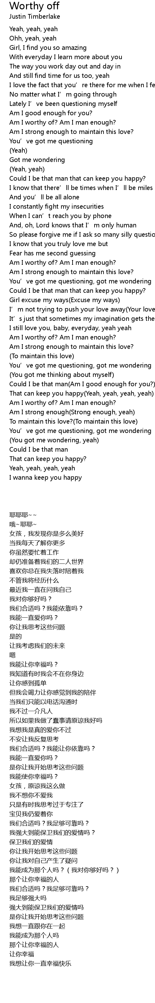 | [03:14.96] | Am I worthy of? Am I man enough? |