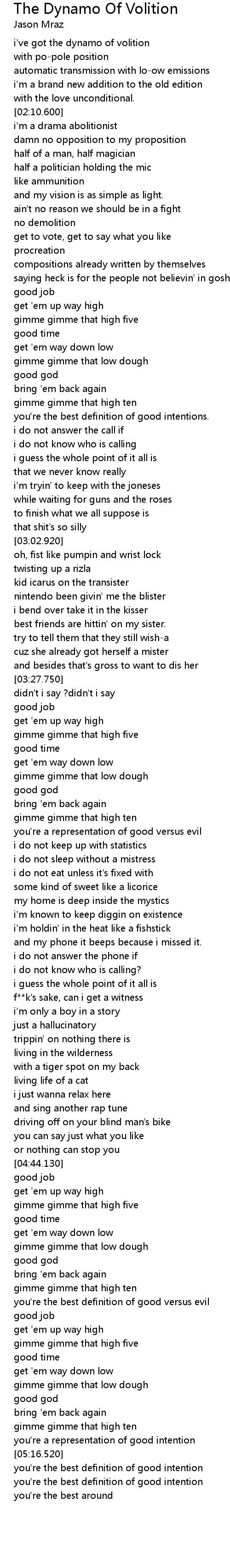 i've got the dynamo of volition |