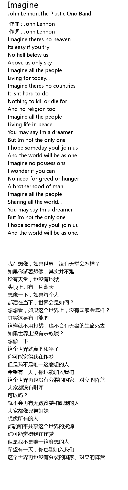 | [00:01.00] | 作词 : John Lennon |