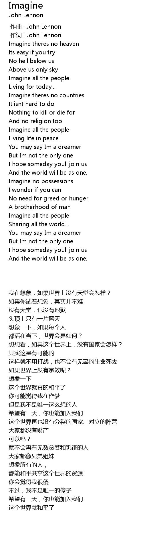 | [00:01.00] | 作词 : John Lennon |